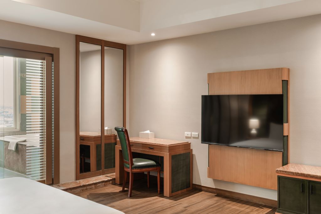 乾溼分離衛浴、獨立浴缸、靜音冰箱、獨立吹風機、沐浴用品、毛布巾、免費MiniBar、熱水壺、保溫壺、獨立Wifi系統、免費隨選藍光視訊、串流影音系統