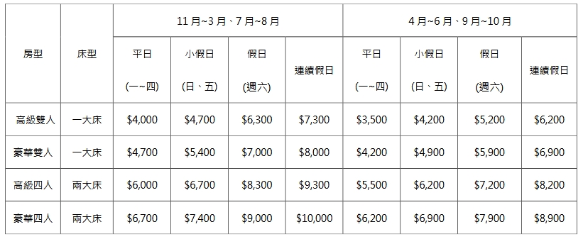 旺季淡季價目表